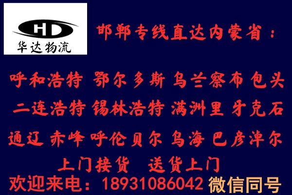 邯鄲到呼和浩特物流歡迎您的來電(0310-5510646//18931086042靳經(jīng)理)邯鄲到呼和浩特物流專線,邯鄲到呼和浩特物流公司的詳細(xì)介紹頁(yè)面。