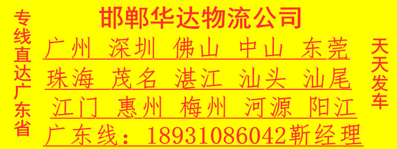 邯鄲到茂名物流歡迎您的來電(0310-5510646//18931086042靳經(jīng)理)邯鄲到茂名物流專線,邯鄲到茂名物流公司的詳細(xì)介紹頁面。